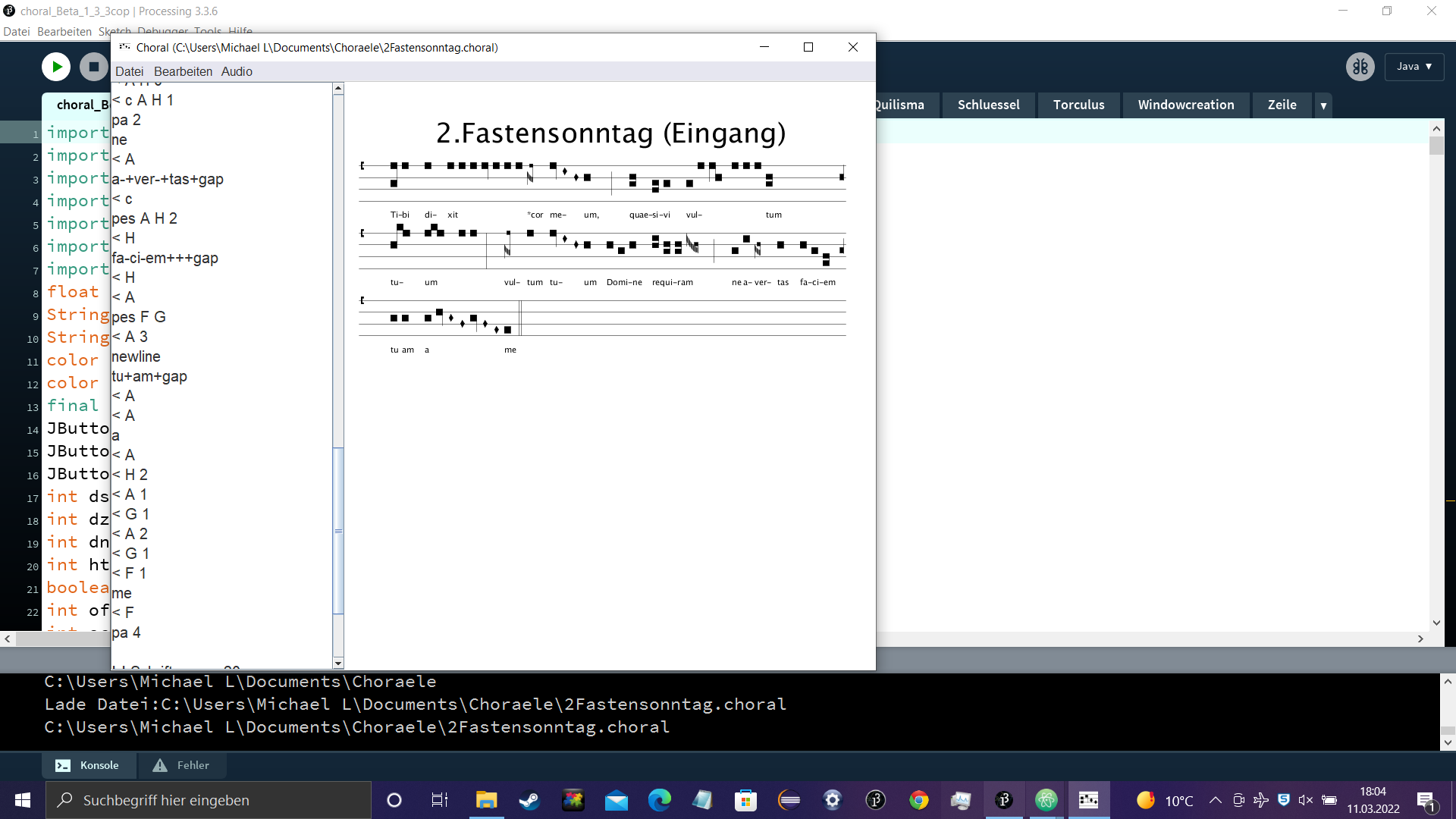 Wenn man nicht mehr weiß, wo man sich im Code befindet, kann man den Befehl M einfügen und die nächste Note wird Rot markiert.